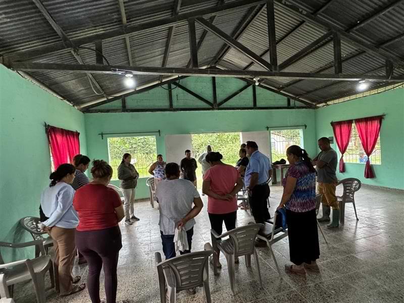 During the Convención Nacional de Iglesias Bautistas de Honduras (CONIBAH) Annual Assembly, BWAid Program Manager Claudia Escobar made a follow-up visit to the plantain project in Soberanos del Rey, El Progreso, Yoro, where 14 families each received 1,000 plantain seeds. A meeting with Pastor Edwing Fajardo and beneficiaries included a feedback session and a tour of the crops.